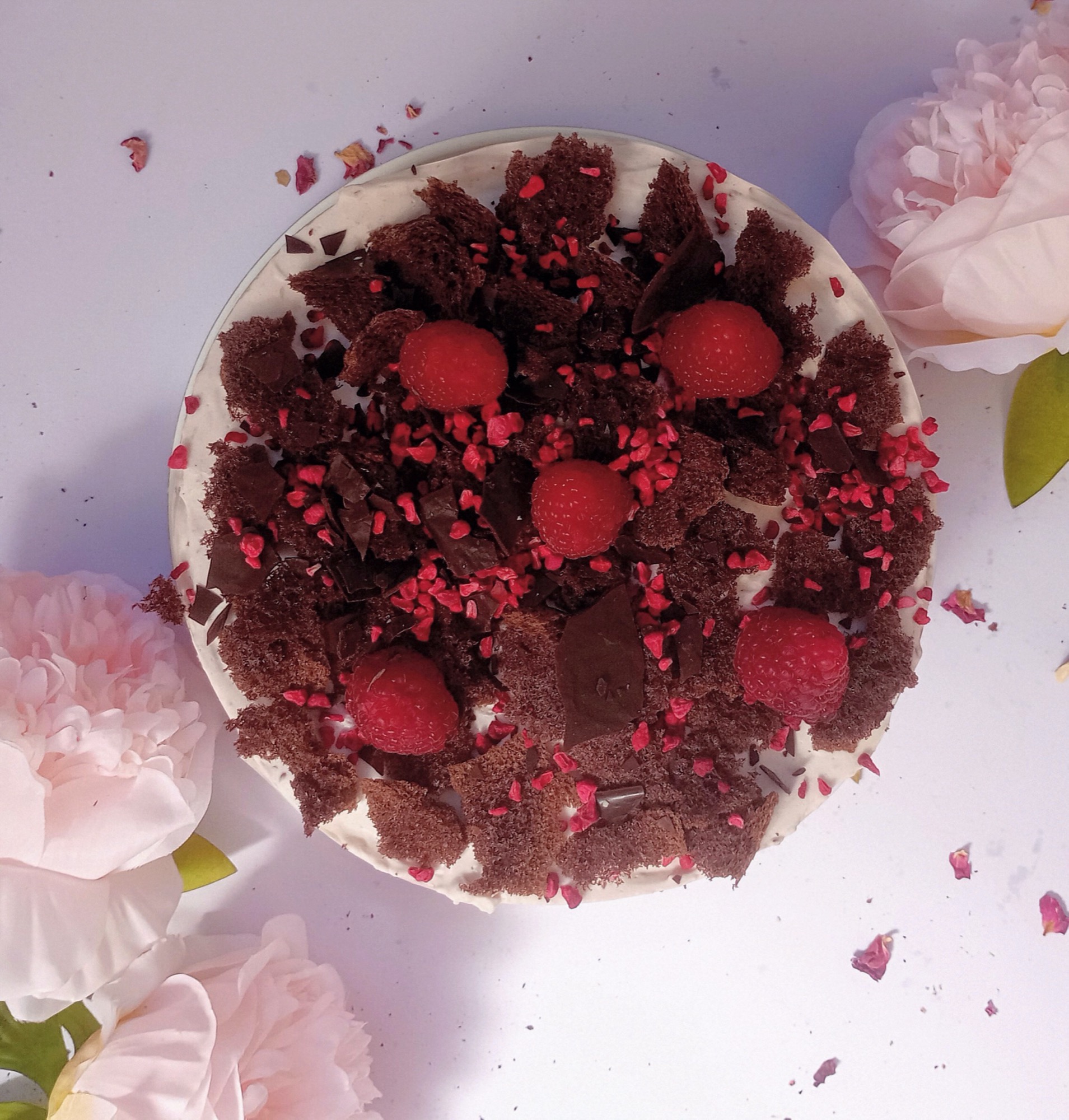 SKŁAD: jaja, kakao, erytrytol, mascarpone, serek śmietankowy, śmietana, maliny, masło, żelatyna, czekolada mleczna i biała i gorzka słodzona stevią i erytrytolem